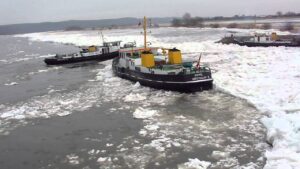 Sindsdien is onder andere de XXL-ijsbreker “Keiler” in gebruik. Met ongeveer 1100 pk vaart het schip zelfs steeds weer op de ijsbarrières, zet het zich schrap en verplettert het ijs: dag en nacht. Tien ijsbrekers zijn verderop continu in actie om banen zich een weg te banen door de bevroren barrières, om zo de rivier weer bevaarbaar te maken.