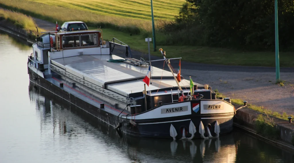 De keuze voor dit relatief bescheiden scheepstype was niet toevallig want zij kozen België, Nederland en Frankrijk als vaargebied. Met hun 42 meter lange spits “Avenir” voeren zij vervolgens tien jaar lang met ladingen als graan, veevoer en kunstmest. Het schip was ook een varende B&B waardoor er soms ook nog passagiers aan boord waren.